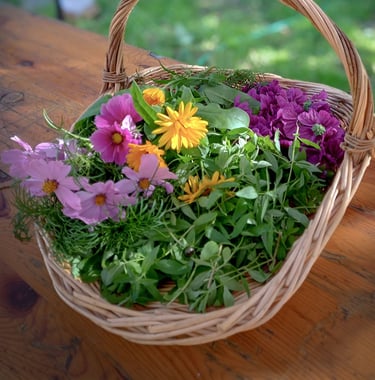 Alchimistes en Herbes vous propose un atelier dégustation de plats réalisés avec les herbes présentes au cœur de notre potager sensoriel et sauvage, au bord du cours d’eau "Le Saulay", dans une ambiance guinguette au son des oiseaux !